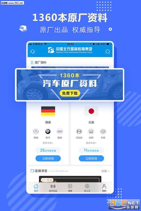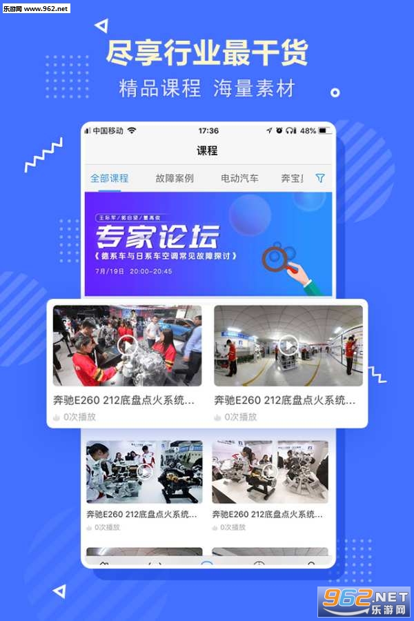 1.名企总监直播课堂:每天多期视频直播,由汽车行业名企的总监级专家,亲自详解工作中常见问题,分享一线工作心得,帮助学员快速积累经验。课程内容包括汽修基础知识、故障案例、经典实操课堂、电动汽车修理系列实战案例、奔驰宝马奥迪系列实战案例、汽车改装、汽车最新资讯、无人驾驶课堂等。
