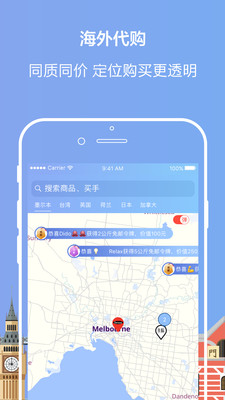 2.定位扫货:地图实时精确定位海外买手,买卖源头安心透明。两种购物模式,指定买手or一键抢单。一群海外帅哥美女买手,抢着帮你做代购的热情,隔着屏幕都能感受到!