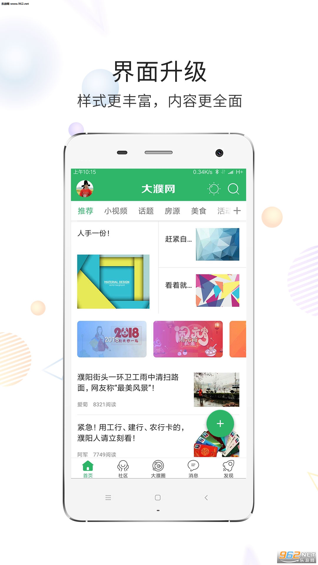 大濮网集濮阳实时资讯、濮阳民生、生活消费、娱乐交友于一体,这里汇聚了成千上万热爱生活、爽朗热情、互助友爱的热心网友,我们积极向上、有梦想、有追求、有爱心。在这里可以闲聊猛侃、分享吃喝玩乐、衣食住行、购物消费、交友婚恋等生活中的点点滴滴,认识更多的朋友,拓展自己的交际,从这里开始!
