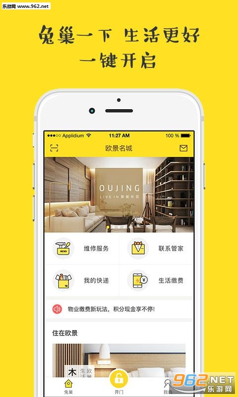 《兔巢安卓版》是一款智慧生活服务类软件,软件功能风格,拥有智慧物业,智慧生活两大板块,用户一方面可以直接利用此平台处理日常生活中的社区缴费服务,报修维修等等,还能利用此软件一键开门,取快递,在线购物等等,非常方便,需要的小伙伴赶紧下下载吧!