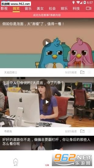 【海量内容】千万高清视频播放无广告,新鲜内容极速呈现,随时随地超级省流量!上万家媒体每日为你报道国内国际热点新闻、社会动态、军事、奇闻、娱乐、美食健康等精彩内容,让你不远游,知天下。