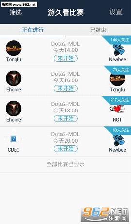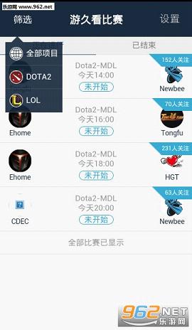 我只想看LOL的赛事,你给我显示的怎么都是dota2的比赛,不好不好,别着急,你可以在右上角,点击筛选功能,选择你喜欢的LOL即可哦。