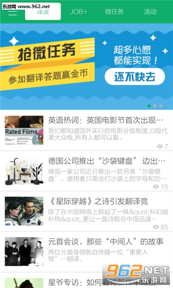1、聚集语言爱好者过40万;集国外资讯阅读、翻译于一体的APP。