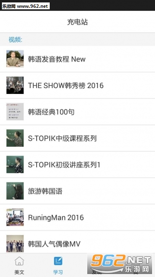 【视频充电】涵盖基础发音、基础入门、TOPIK课程、旅游韩国语、日常用语动画、韩国人气MV、韩国综艺等丰富资源,纯正韩语真实体验,学习娱乐两不耽误。