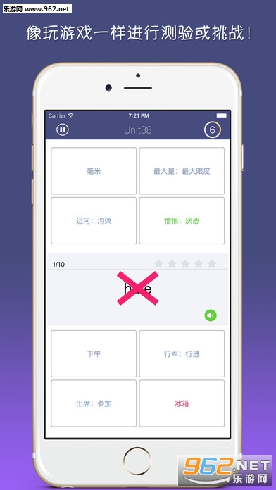 挑战模式,只听单词发音,从8个选项中快速回答,非常刺激,让你的心跳瞬间加速!