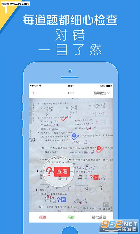 1、家长整页作业拍照:支持整页作业拍照检查,一次可拍四整页作业,家长再也不用逐题核对,超级省心省力。