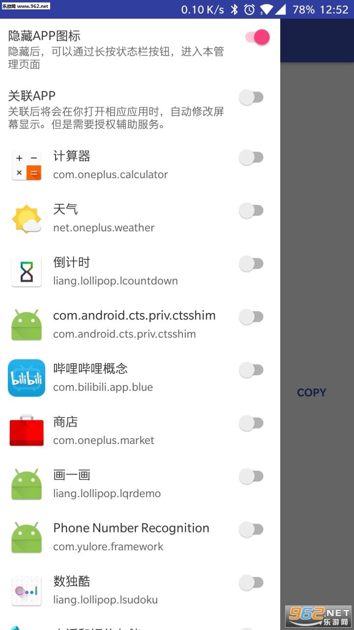 3、支持状态栏的快捷按钮以及应用的自动切换等,还可以进行应用图标的隐藏,不需要Root哦。