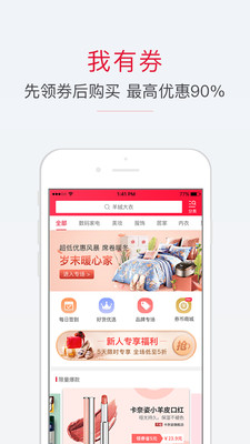 那有没有想过在平常的时间内,获得那么两张可以打8折或者7折的优惠券再去购买,那岂不是美滋滋,我有券这个软件就可以帮我们实现,在软件中可以随时领取数额不等的优惠券类,随时可以前往相对应的商家进行使用,可谓是一款非常实用的购物软件。