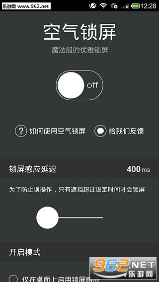 《空气锁屏》不接触屏幕即可锁屏解锁,这款软件其实去年就出来了,但是有广告而且不是很稳定。小编为大家带来空气锁屏最新稳定版,喜欢就来下载给个好评吧!