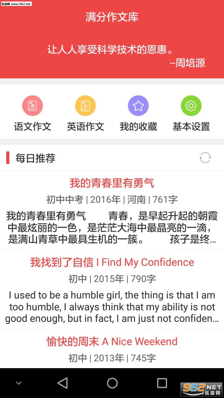 《满分作文库大全》是一款为你带来海量作文素材的学习软件。