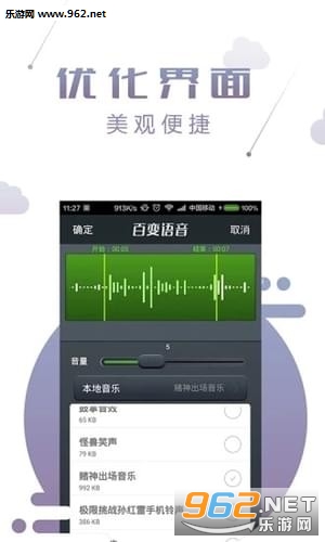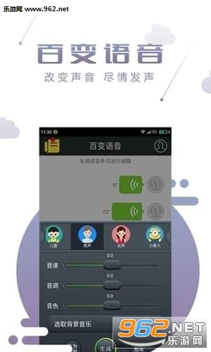 2.多种变声效果可选:爷爷、大叔、萝莉、小孩、幽灵、机器人...... 变声时只需轻轻一点,让你成为自带BGM的潮人