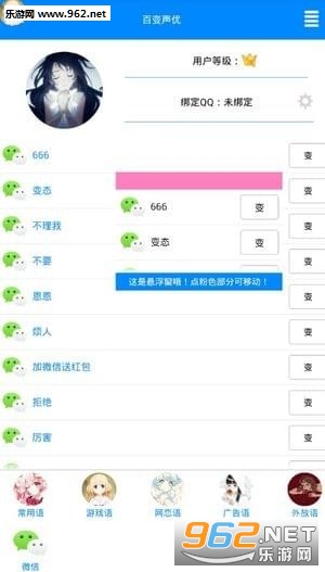 各类语音、百变音效,想怎么变就怎么变,让你的小伙伴一脸懵逼,一起来玩玩吧。