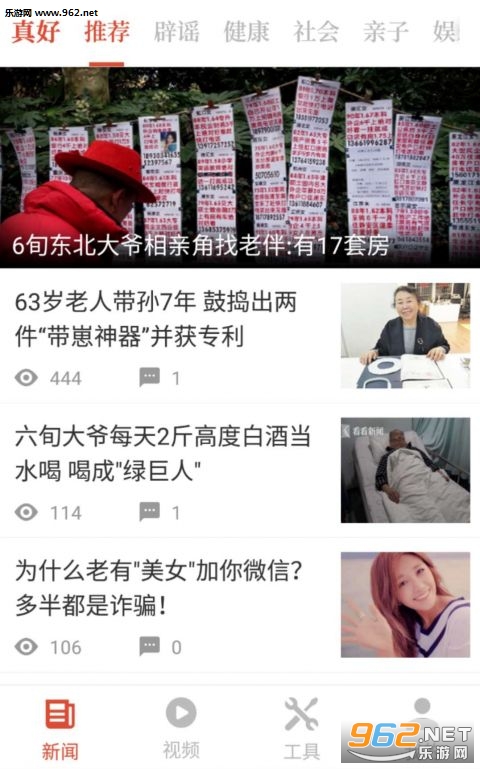 《真好生活》是一款专为中老年人准备的资讯阅读平台。实时更新今日头条、社会热点、军事等多种类别的新闻资讯,有专业的团队把关,传播良好的,有利于社会的内容,还有精彩的短视频可以观看,一起来试试吧。