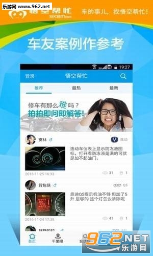 悟空帮忙app为车主提供汽车维修、保养的汽车后市场服务平台。即拍即问车主可以像发朋友圈一样把汽车问题拍出来,平台智能连线汽车品牌技师给出最专业的解决方案。千里眼随时随地都可以找到身边优质汽车维修店并提供救助服务。丰富汽车优惠活动,时刻为车主省钱。
