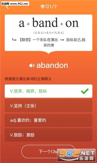 【单词练习】拼写练习,例句发音,复习考试,星级评定。