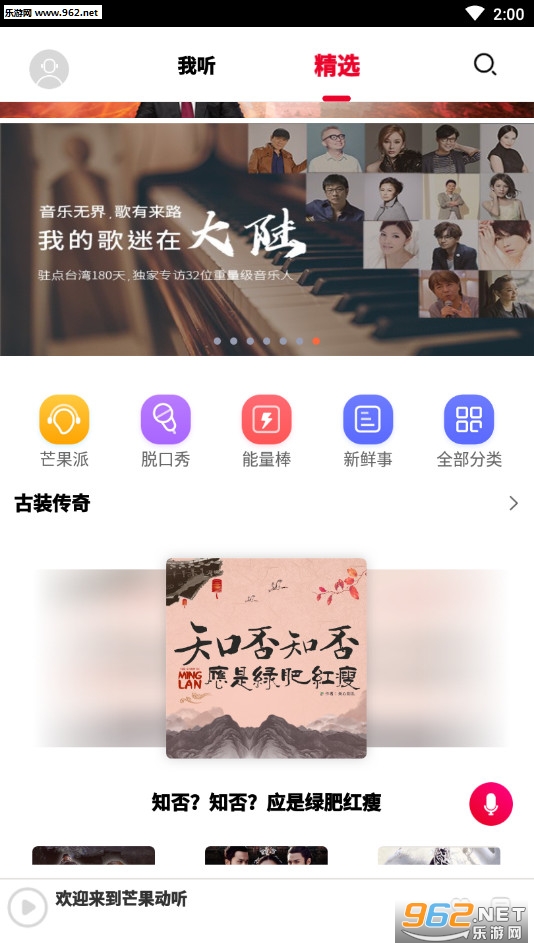 您喜欢的芒果音频这里全都有,不用在到处的寻找了;