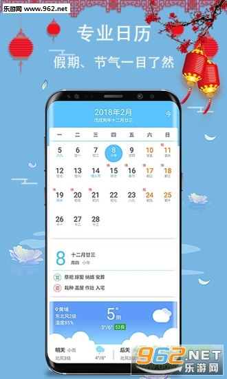 还包含24节气以及世界著名节日标注!周一至周日工作日与休息日、法定节假日清晰可见!实时天气预报功能,七日天气、十五日天气为生活工作保驾护航!