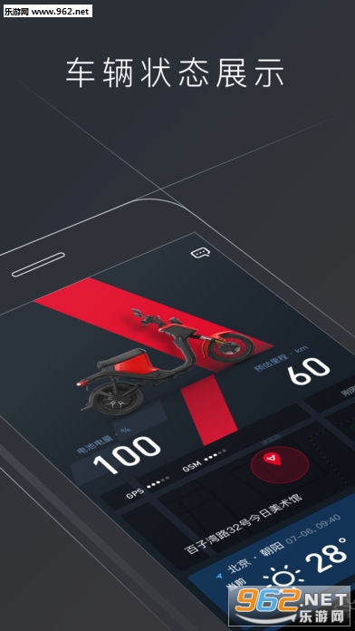 车况:剩余电量、定位信息、历史轨迹、骑行统计;
