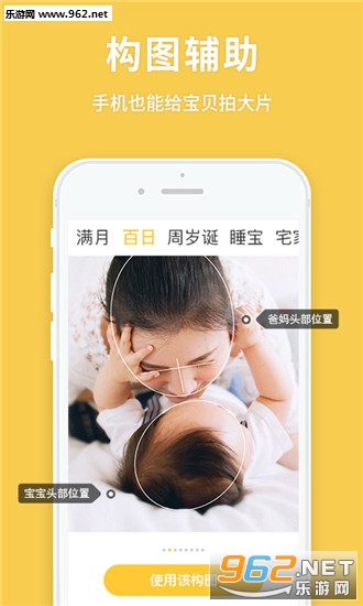 「构图辅助」使用亲子专属拍摄构图,用手机就能给宝贝拍大片