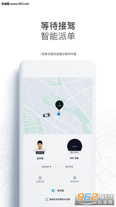 用手机号快速注册,乘车前无需预约;提前几分钟发送用车请求,并在上车前输入目的地,系统将派送离您最近的一辆车到您面前。