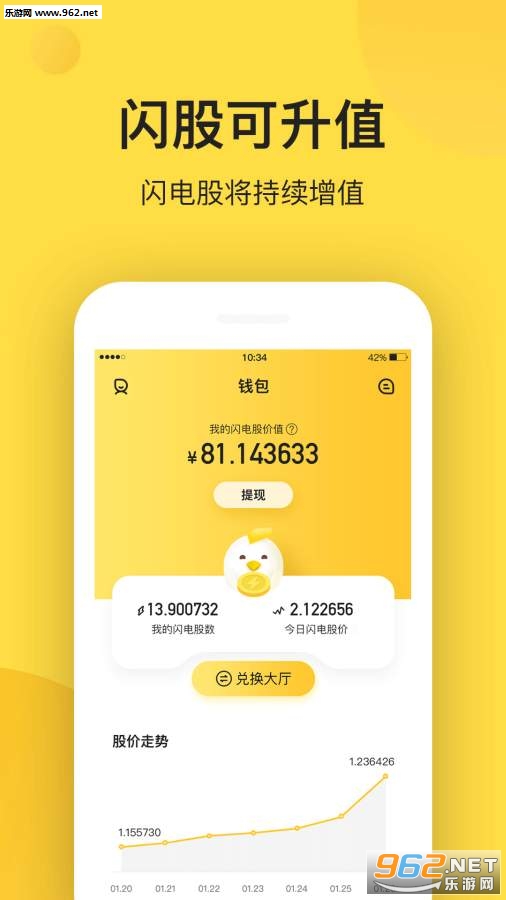 3、随时可以将闪电股折算成金额提现至你的钱包。