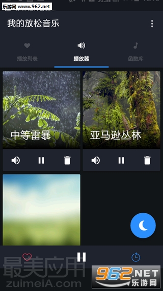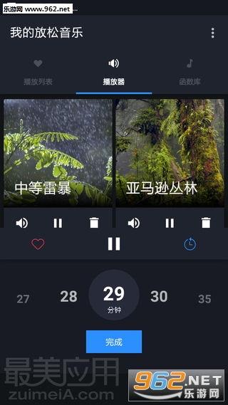 在「我的放松音乐」中,也为你将几个白噪音和其他音乐做成了几个合集,你只需要点击,就可以听到,并且它们混合起来也十分的好听,例如亚马逊丛林搭配上中等雷暴,混合起来就十分的轻松,而在防止屏幕锁定的方面,