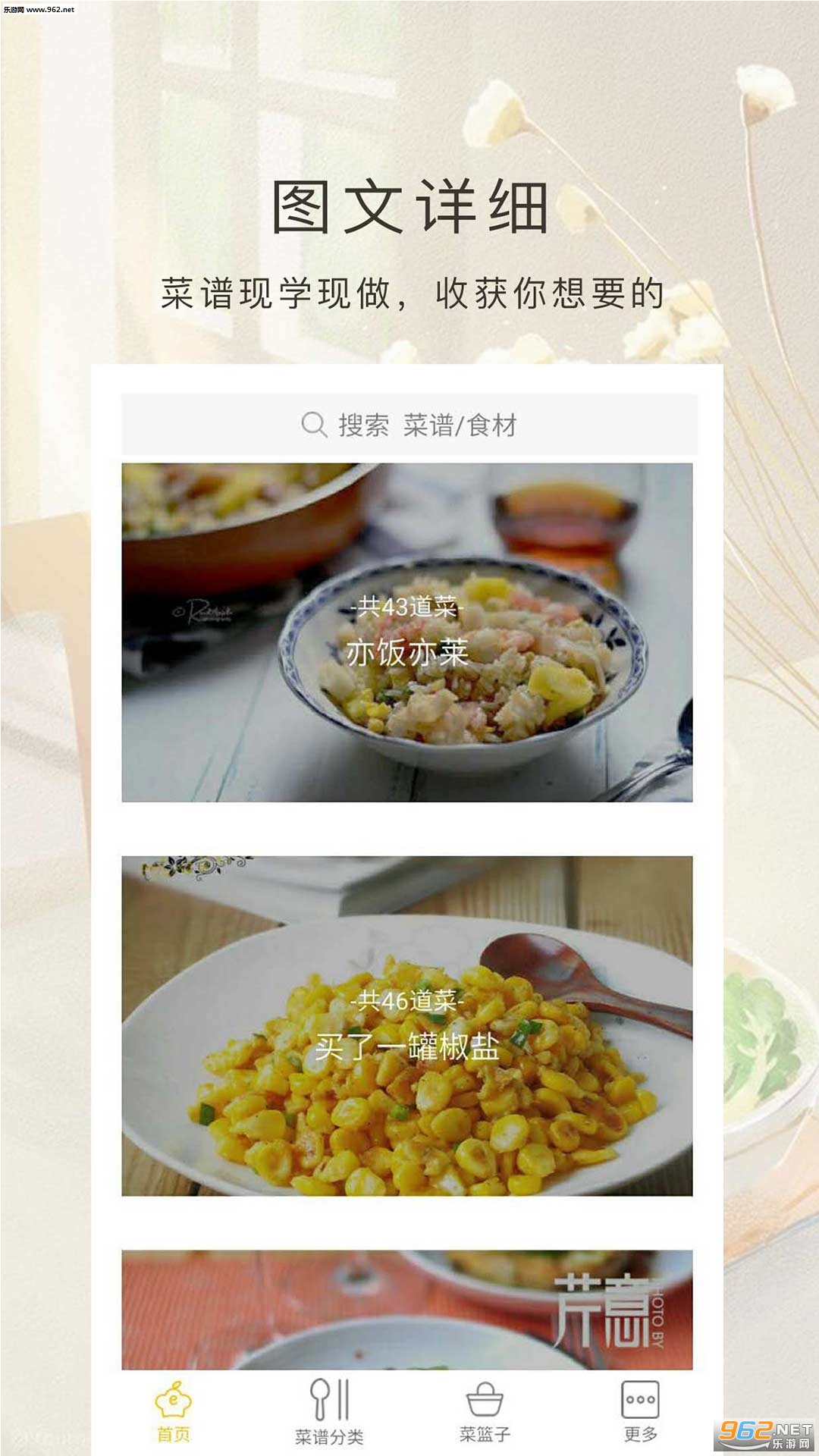软件里面拥有海量的菜谱让你来学习,采用图文介绍的方式,让你轻松掌握该美食的制作方法,让自己的在做菜的时候更加轻松,感兴趣就来下载吧!