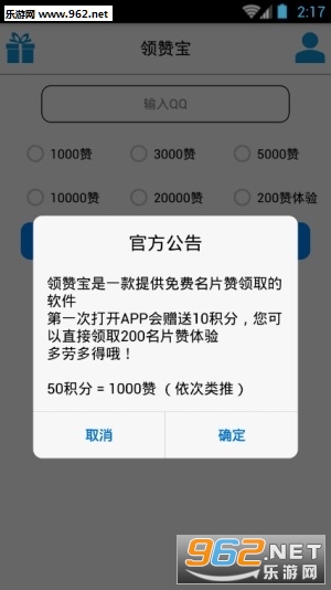 《cpg领赞宝app》是一款为QQ用户提供的刷赞工具,免费刷赞,获得高人气的选择,直接输入你的QQ账号,即可获得一些人群的点赞,免费体验的是200赞,每天都可以直接领取哟,快速提高你的QQ人气,你的名片访问量直接暴涨。
