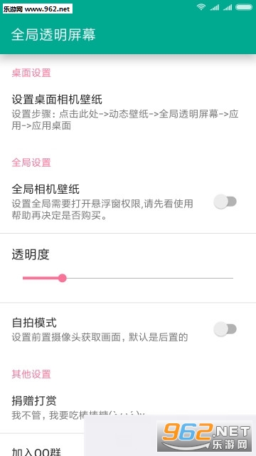 全局透明悬浮app下载,可以开启全屏模式的透视功能,让你的手机直接利用拍摄的画面成为壁纸,《全局透明悬浮踢我上去版》这个版本也是相当的受欢迎,玩家可以自行选择,并且修改属性,支持相机拍摄开启,桌面就是你的相机指示面,可以选择自拍模式哟。