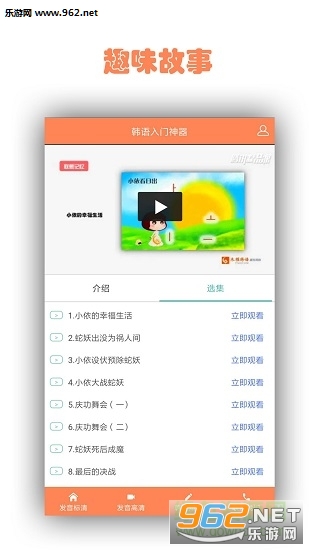 1、韩语基础发音课程,循序渐进,运用各种趣味记忆诀窍帮助你快速掌握,使语言学习不再枯燥,轻轻松松学韩语。