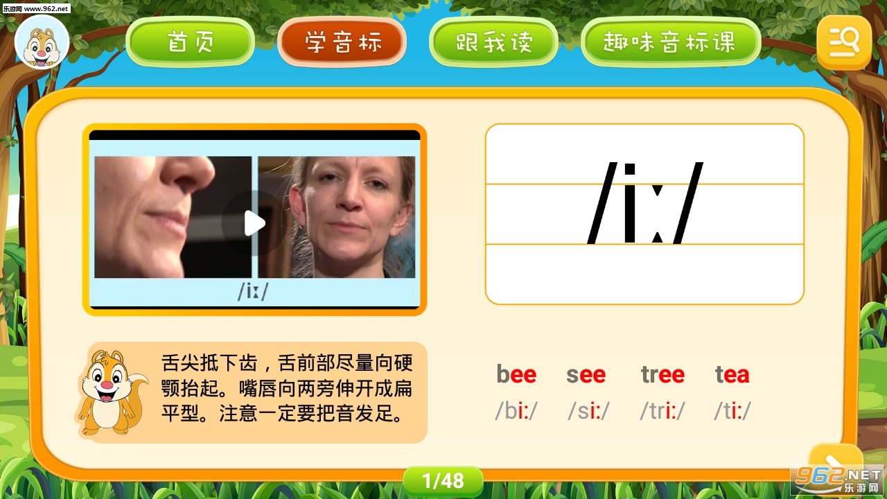 《小学英语音标点读》软件提供48个音标音标的真人发音语音,口型图,文字要点说明和单词发音示例,再加上跟读对比、单词听写、音标听写多种形式的选择题练习和测试,让你轻轻松松快速学会音标。