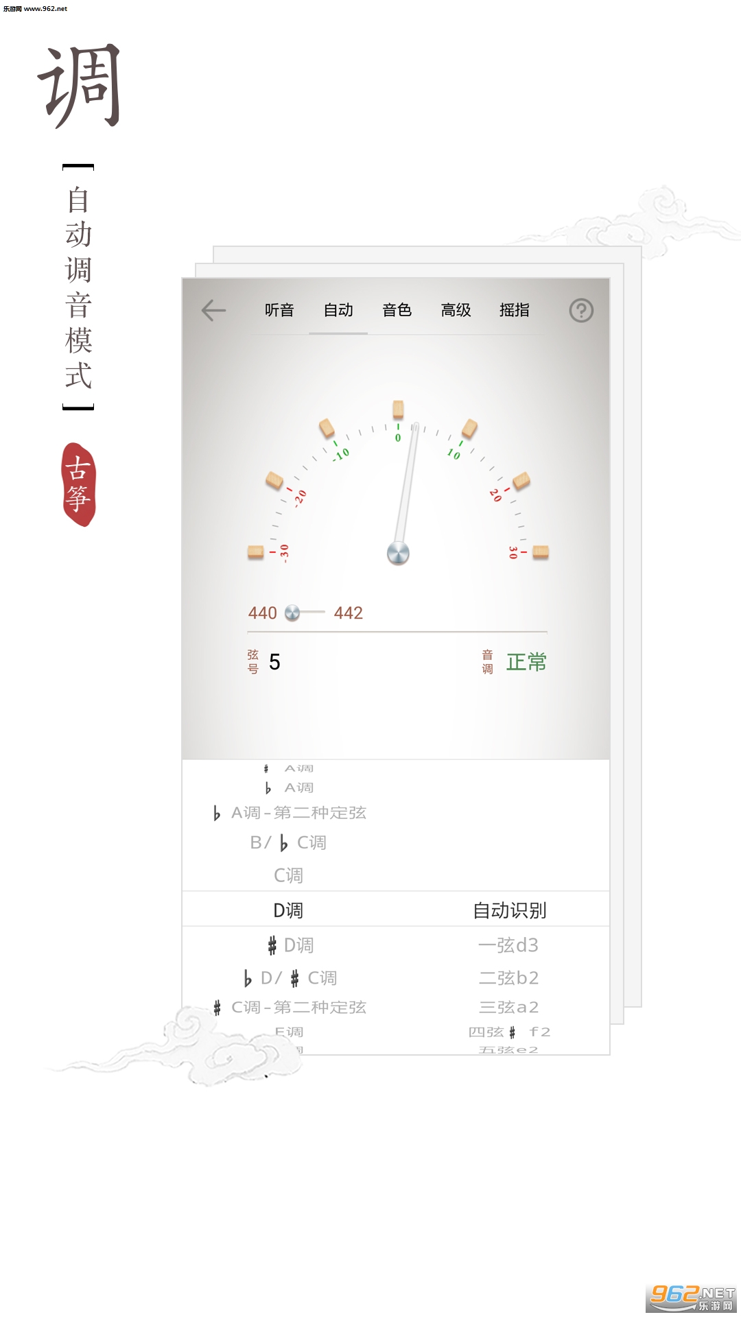 古筝调音器App,是一款立足于解决中国民族乐器古筝 校音/调弦的智能调音App。这款调音器完全根据古筝的真实音色采样校对设计而成,调音定弦识别的过程更加快速精准!