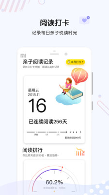 既能记录,又能打卡,还能查看多项排行(排名、名次百分比)。更重要的是享受你与宝宝的亲子阅读时光。