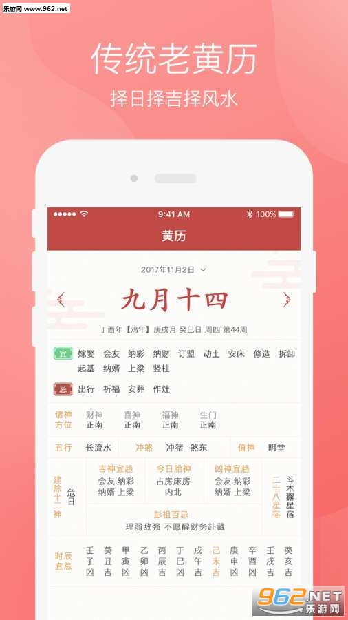 老黄历百科大全,适合中国人使用的万年历。居家常备,随时随地提醒重要事项。