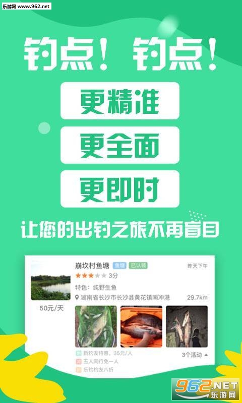 1、大众点评模式专业展示钓场信息,能够方便即时地获取全城钓场的鱼情信息,让您的出钓之旅不再盲目;