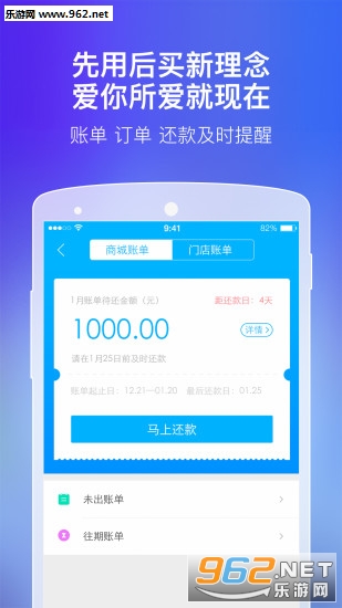 5、为年轻人提供全新的购物+支付方式——先消费、后买单、享分期、优惠多,随时查随地还款;