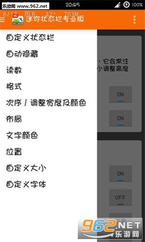 《迷你状态栏pro》是一款为喜欢美化手机的朋友们准备的专业状态栏修改软件,软件的功能非常强大,用户可以通过它自己把状态栏设置成你想要的样子,不仅可以更改格式还能设置字体大小颜色布局等,可以说是非常实用了。有需求的朋友们就快来下载试用吧,小编为大家提供的是迷你状态栏pro汉化版下载地址哦!