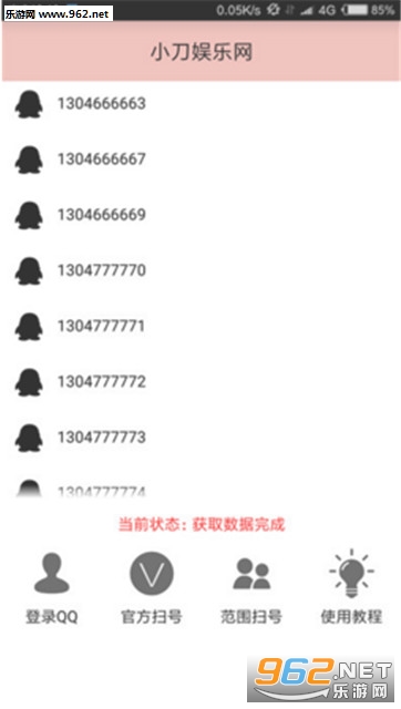《顶级6AQQ靓号扫号机安卓版》是一款非常实用的扫号工具,用户可以通过软件扫到QQ官方靓号站立自己想要的所有靓号。软件的使用方法非常简单,目前有PC端和安卓两个版本,用户只需要输入你想要的数值区间,软件就可以开始自动识别这个账号是否可以注册,可以说是非常方便了。有需求的朋友们就快来下载吧!