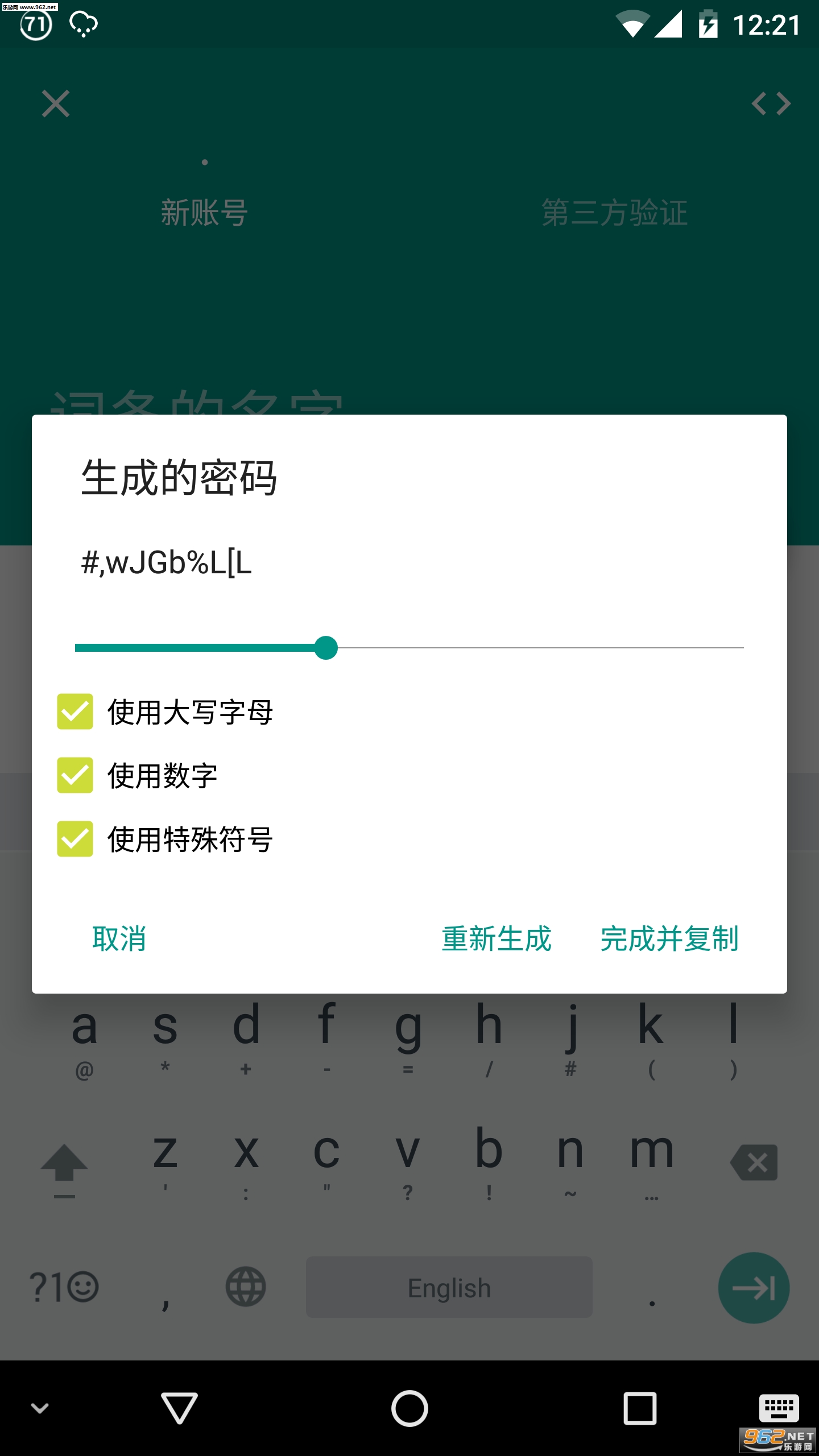 如果觉得指纹验证不放心的话,也可以使用软件自动生成的乱码密码,一键生成,一键记录,下次登录无需再次输入账号密码。