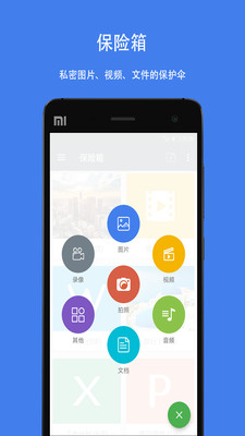 【保险箱功能】通过AES加密算法,对那些您不想与人分享的内容进行加密,且对文件格式、大小没有任何限制,还支持直接拍照和录制私密视频文件,加密后的数据安全无忧