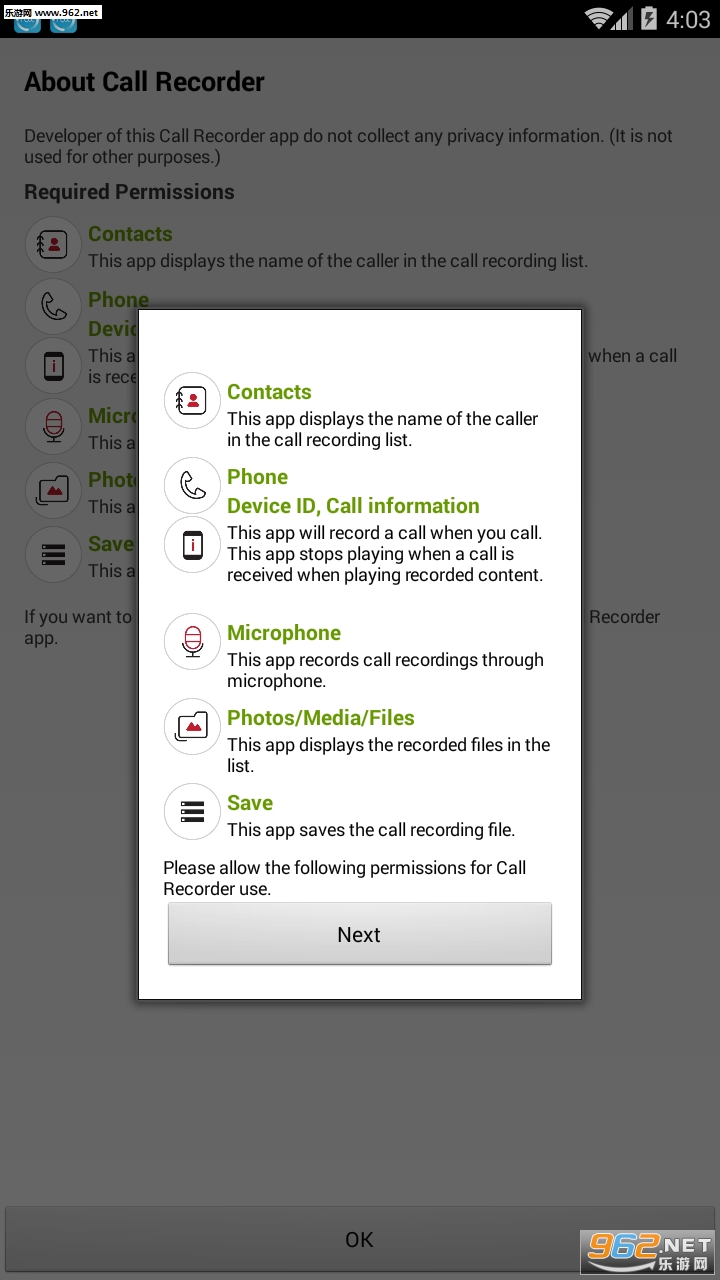 由于Android本身的限制,通话录音软件并不像其它类型的软件那样繁多,但高质量的通话录音软件还是有的,这款CallRecorder就是一款非常强大的通话录音工具,可切换多种记录源(内核或API),尽可能地适配到更多的机型。