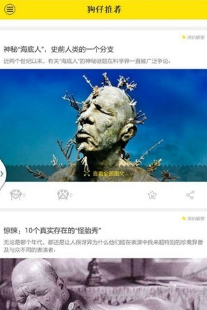 狗仔快报,全天候报道各类新闻资讯,还是一个新闻社交平台!5次阅读行为,即可智能分析你的阅读习惯,只推荐你感兴趣的新闻。在“信息爆炸”时代凭借技术能力驱动有价值、更高效的阅读体验,打造千人千面的个性化语音资讯服务平台。