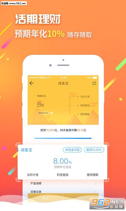 活期理财:首投1元可享高收益8%,1000元每周智能上涨0.5%,年化达10%!