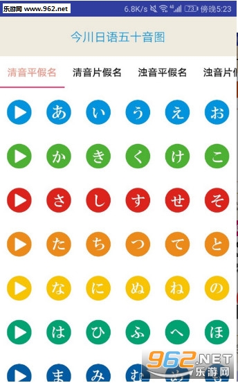 《今川日语》一款日语入门教学软件,主要为用户提供五十音图学习,让用户打下坚实的日语学习基础,有人说日语是小语种中最难的!今川日语为用户带来日语学习前辈的发音技巧,对于喜欢动漫,喜欢日系游戏或者说你本来就是日语专业的学生,这款软件都是不错的选择,纯正的发音,细腻的教学,让你感受学日语不再难!感兴趣的朋友快来下载吧!
