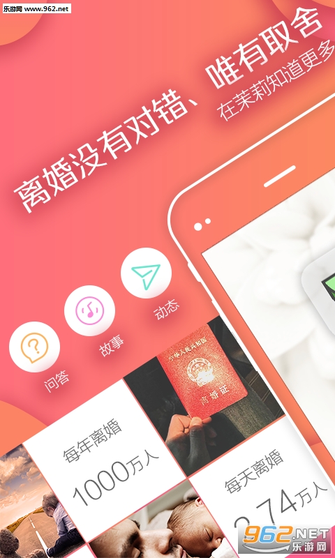 离婚是我们对自我人生的一次重新选择,所以如何能够更好的生活对我们来说意义非凡,无论你是在痛苦的婚姻中挣扎,还是已走出婚姻的围城,我们对婚姻及人生总是充满那么多困惑,重新开始的生活存在诸多困扰,在茉莉,咨询数百位情感专家倾心交流,在茉莉,倾听千万个婚姻情感故事,在茉莉,找到重启精彩人生的钥匙。