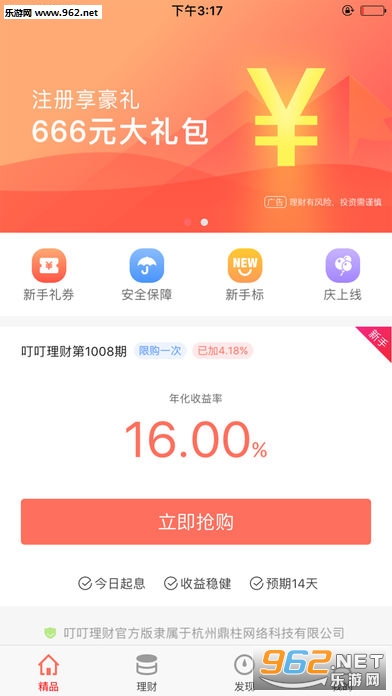 叮叮理财运营方为杭州鼎柱网络科技有限公司,后者致力于为理财人群严选优质的理财产品,提供专业的撮合交易服务。自平台上线运营以来,紧随全球金融一体化与信息技术创新发展的步伐,引入银行级风险管理模式,不断深挖”互联网金融+第三方资产+科学合理配置”的模式,专注于供应链相关的金融精品业务,去除中间环节,用专业风控及多重保障,为投资人提供专业、透明、便捷、灵活的理财产品和服务,帮助广大用户实现财富增值。