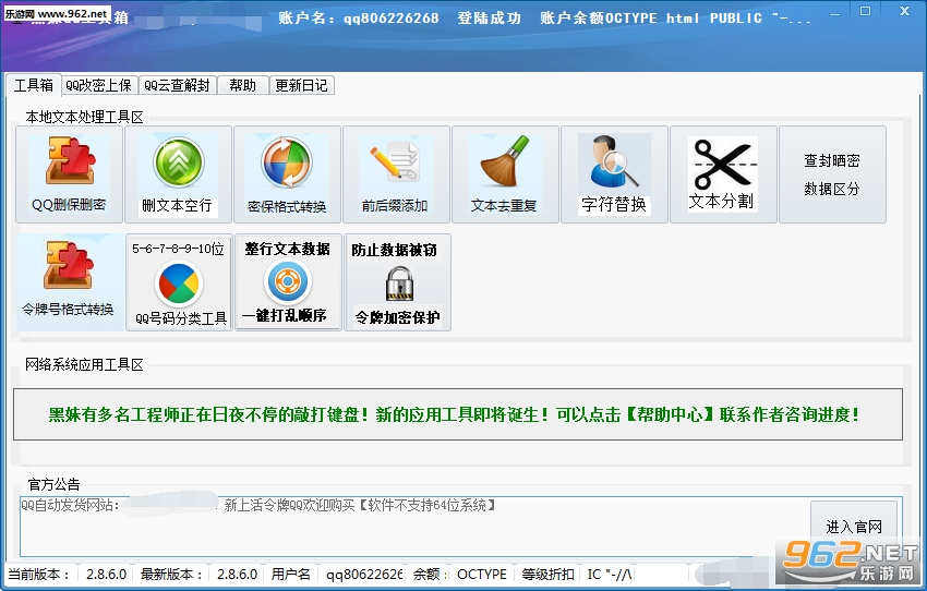《黑妹QQ工具箱3.2 免费永久绿色版》是一款功能强大且绿色免费的QQ工具箱软件,它可以帮你做任何你想达到的效果,比如最简单的文本删保删除密码功能号码令牌加密保护等等功能,目前更多功能正在不断完善中....软件使用免费...更多功能请下载体验!