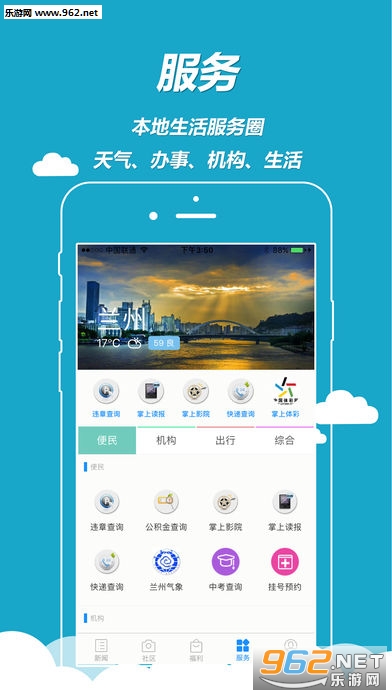 兰州本地公共服务的掌上信息平台,医院挂号,电影票,违章缴纳、公共缴费等等尽在掌上兰州。