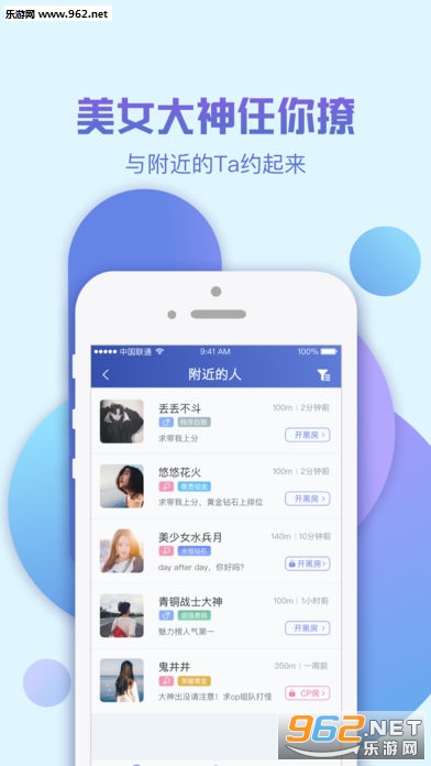 ~一键智能匹配系统,帮你找到最合适的队友,附近不同段位的美女大神随你撩,你还可以和认识的好友建立群