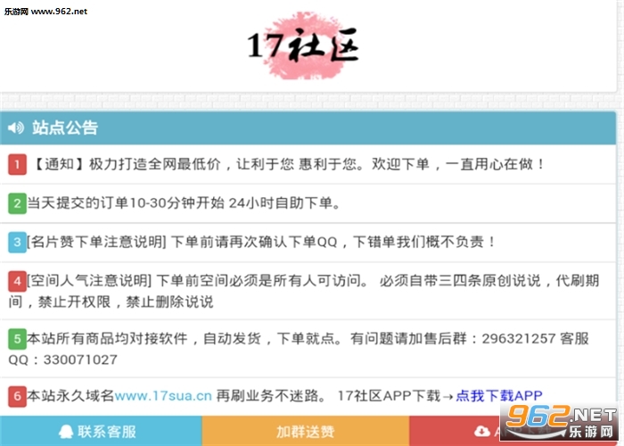 《17社区代刷网自助下单app》是一款17社区-17代刷网-24小时自助下单平台,全网刷业务,在线刷qq空间说说赞,集名片赞、空间访客、免费拉圈圈、粉丝等等空间业务于一体的自助下单平台,全网最低价,下单后10秒开刷,最大的空间业务代刷平台。